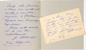 ─ 1 Carte-lettre in-16° - “Cher Monsieur LEGRAND (Député et Mécène). J’aurais grand plaisir à vous montrer mes envois du Salon qui partent jeudi prochain. Pouvez-vous venir à mon atelier Mardi ou Mercredi avec Madame LEGRAND ».