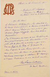 “Mon cher ami. Le Dimanche 15 Décembre, les Membres de la Société Internationale de Peinture et Sculpture fêtent dans un diner, qui sera présidé par Mr Georges LEYGUES, leur trentième anniversaire. J’ai l’honneur, au nom de mes Confrères, de vous prier d’accepter cette invitation à cette petite fête de famille artistique, qui aura lieu au Café de la Paix...”