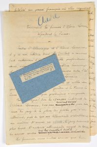 (GUERRE 1914/18. FEMMES D’ALSACE-LORRAINE) Émile HINZELIN. Manuscrit autographe signée de 5pp 1/2 gd in-8° -