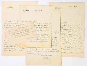 Alexandre RIBOT, de l’Académie française, Sénateur du PAS-DE-CALAIS (Saint-Omer 1842 – Paris 1923) – 4 Lettres A.S. à l’Entête du SENAT, du 5 oct. 1919 au 22 oct. 1920, de format in-8° & Sa Carte de Visite –