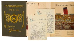 [PAQUEBOT FRANCE/ COMPAGNIE GÉNÉRALE TRANSATLANTIQUE] – Lettre de voyage d’un ingénieur chimiste écrite à bord du « FRANCE » en rade de NEW-YORK le 15 septembre 1923. Récit de sa traversé transatlantique entre LE HAVRE et NEW-YORK à...