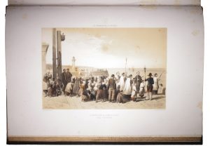 la Manche dessins d'après nature par Fx Benoist, et lithographiés par les premiers artistes de Paris; les costumes dessinés et lithographiés par Hte Lalaisse, maître de dessin à l'Ecole polytechnique. Nantes, Charpentier père, fils et Cie, 1854. 3 vol in-folio demi-chagrin vert, dos orné à faux nerfs, plats avec titre dans un médaillon et filets dorés, tranche dorée. Premier volume: Seine-Inférieure. Deuxièmre volume: Eure et Orne. Troisième volume: Calvados et Manche. Bon état, rousseurs