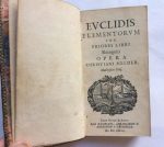 EUCLIDE D'ALEXANDRIE. Euclidis elementorum sex priores libri recogniti. Opera Ch. Melder. Leiden et Amsterdam, Danie; Abraham et Adrien a Gaesbeeck. 1673. Petit in-12, (3ff) et 306 pages.