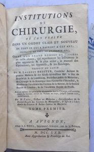 HEISTER, Lorenz. Institutions de chirurgie où l'on traite dans un ordre clair et nouveau de tout ce qui a rapport à cet art : ouvrage de près de quarante ans, orné d'un grand nombre de figures ... traduit du latin de M. L. Heister ... Avec un...