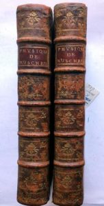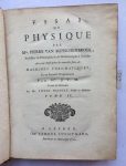 VAN MUSSCHENBROEK, Pieter. Essai de physique, par Pierre Van Musschenbroek, professeur de philosophie et de mathématiques à Utrecht. Avec une description de nouvelles sortes de machines pneumatiques et un recueil d'expériences par Mr. J.V.M.....