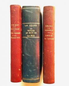 CÉLINE et DRIEU. Voyage au bout de la nuit. Paris, Denoel et Steele, 1932. In-12, 1/2 veau à coins. Édition originale sur papier d'édition. Couvertures non conservées.