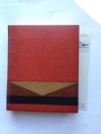 Plein maroquin à gros grains orange ; large décor géométrique dans la partie inférieure, composé de maroquin noir, de maroquin havane clair et de maroquin havane foncé.