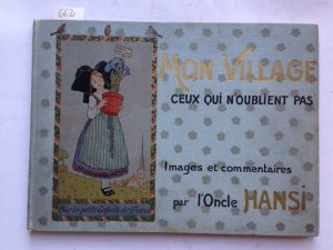 HANSI, J.J. Waltz, dit. Mon village. Ceux qui n'oublient pas. Images et commentaires par l'Oncle Hansi.. Paris, Floury, 1913. In-4° à l'italienne (245 X 330 mm), pleine percaline illustrée de l'éditeur, Bon exemplaire de cet ouvrage abondamment...