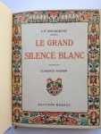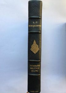 ROUQUETTE, Louis-F. Le grand silence blanc. (Roman vécu d'Aaska). Illustré par Clarence Gagnon. Paris, Mornay, 1928. Plein maroquin noir à gros grains ; 11 compartiments rectangulaires délimités par des filets à froid.