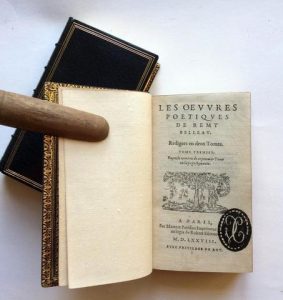 Première édition collective des oeuvres du poète, membre éminent de la Pléiade. Il est probable que l'éditeur de ces œuvres soit Robert Estienne, à qui J. Paul Barbier attribue aussi la Préface.