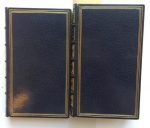 Plein maroquin bleu nuit, triple filet d'encadrement, dos orné, filet sur les coupes ; dentelles intérieures.