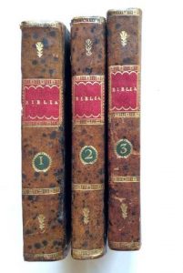 BIBLE LATINE DE YOLANDE BONHOMME. Biblia sacra, integrum utriusque testamenti corpus complectens... Thielman Kerver (Paris, 19 septembre 1549). 3 volumes petit in-4°, pleine basane racinée fin XVIIIème. (20 feuillets), 520 feuillets, (30...