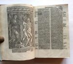 Il est illustré de deux marques de Thielman Kerver "aux deux licornes" (titre et verso de z6), et de deux grands bois gravés, l'un représentant Adam et Ève chassés du Paradis Terrestre (verso de B4), et la Généalogie du Christ sous la forme de l'Arbre de Jessé (feuillet 515 verso).