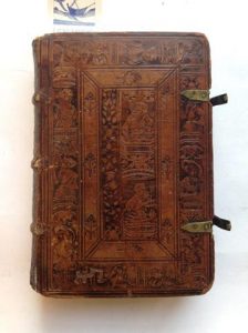 Veau du temps sur ais, avec un riche décor à froid composé d'une large roulette datée de 1535, avec les figures allégoriques Lucretia, Superbia, Prudentia, Justitia ; dans la partie centrale du premier plat, une figure avec les mots "Ecce Agnus Dei" datée 1535, et une autre portant les mots "Gratia per Ch".