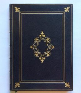 Plein maroquin bleu-nuit, fleurons d'angle, filets droit dorés alternant avec 2 filets à froid ; large fer central dans le goût de la Renaissance.
