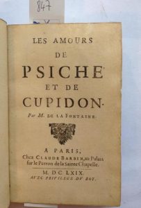 LA FONTAINE, Jean de . Les Amours de Psyché et Cupidon. Paris, Claude Barbin, 1669. In-8, (12 ff), 500 pages.