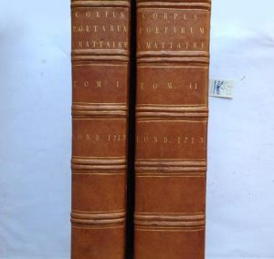 MAITTAIRE, Michel. Opera et fragmenta veterum poetarum latinorum profanarum et ecclesiasticorum. Londini. Apud Nicholson, Tooke & Tonson. 1713.. . 2 volumes in-folio (410 X 260 mm), (5ff), 803 pages, (1f), 805-1752 pages, (6ff) et 7 pages.