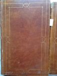 Plein cuir de Russie bois de rose, triple encadrement de filets dorés dont deux s'entrecroisant en demi-cercles sur chaque côté, dos ornés de filets dorés, tranches dorées.