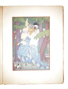 VERLAINE (Paul) & BARBIER (Georges). Fêtes galantes. Paris, H. Piazza, 1828. In-4; broché, couverture illustrée rempliée. Titre illustré, 2 illustrations sur les couvertures, & 20 planches de George Barbier coloriées au pochoir. Un des 800...