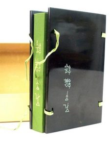 LOUEN YU. Entretien de Confucius avec ses disciples. Lyon, édition du fleuve.1959. Reliure pleine toile enserrée dans un étui laqué noir, orné d'idéogrammes et fermant avec des lanières de tissu, le tout se rangeant dans un emboîtage...