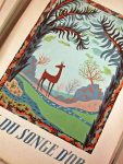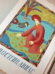 Aux nombreux ornements qui ponctuent admirablement le texte, le manuscrit offre 8 magnifiques compositions pleine page d'avantage dans l'esprit de ses affiches publicitaires figuratives que dans le style abstrait qu'il développera dans ses peintures à partir de 1954.