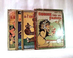 Soit trois autres volumes en cartonnages illustrés, en très mauvais états, crayonnage intensif, pages déchirées, voire manquantes sur un des volumes.