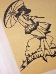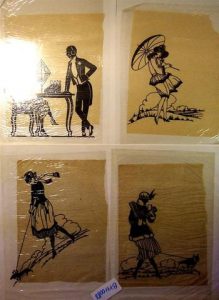 [CANIVETS]. Ensemble de 4 grands canivets Art-Déco. Vers 1925. 22 x 16 cm environ. Bel ensemble de 4 canivets style Art-Déco, non datés et non signés, montrant chacun un personnage féminin dans une scène élégante. Le travail de découpe...