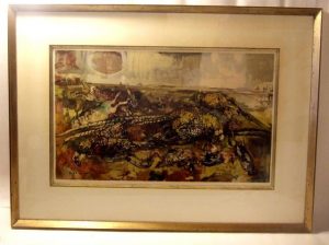 COMMÈRE (Jean Yves). Gibiers. Lithographie signée sur la pierre, encadrée sous marquise, pas de numérotation visible, 48 x 29 cm (cadre 67 x 49 cm).