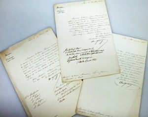 GAYE DE MARTIGNAC (Jean-Baptiste Sylvère). Lot de 3 LAS à entête du Ministère de l'Intérieur de Charles X. Lot de 3 lettres sur vergé filigrané qui sont des convocations au Conseil du cabinet pour discuter de diverses lois à préparer.