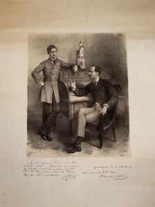 « Je suis venu en France pour être simple soldat... », tandis que son père Philippe d'Orléans (1838-1894), Comte de Paris, pause à ses côtés avec la légende autographe « Je serai le Roi de tous et le premier Serviteur de la France ».
