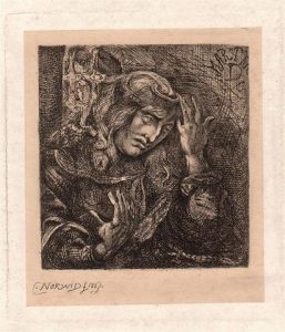 NORWID (Cyprian Kamil). Figure de martyre. 1863. Eau-forte tirée sur chine contrecollé. 11.5 x 10 cm.
