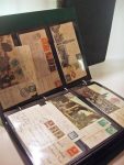 [PHILATÉLIE]. Classeur vert numéroté 10 contenant de vieux plis et cartes postales à partir de 1907, des colonies, Roland Garros, encarts, souvenirs philatéliques, épreuves de T.P., 1er jours, quelques plis avec carnets entiers, etc.