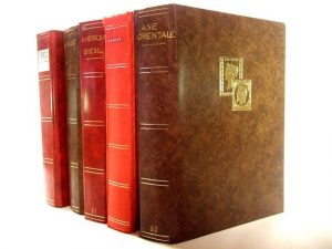 [PHILATÉLIE]. 5 classeurs marrons et rouges numérotés de 30 à 34 qui renferment une collection de timbres étrangers neufs et oblitérés : Afriques, Amériques, Asie, Europe, etc.