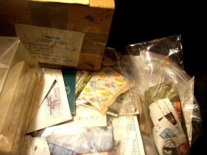 [PHILATÉLIE]. Dans une caisse en plastique très nombreux timbres neufs ou oblitérés en vrac ou dans des boites, timbres fiscaux impériaux, entiers postaux, premiers jours dont US « first man on the moon », etc. À trier.