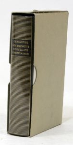 CERVANTES. Don Quichotte. Nouvelles exemplaires. Paris, Gallimard, NRF ; pet. in-8, reliure de l'éditeur marron, dos lisse orné de filets dorés, jaquettes papier et rhodoïd, étui cartonné muet.