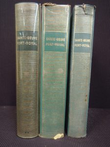 SAINTE-BEUVE. Port-Royal. I.– III. Paris, NRF, Bibliothèque de la Pléiade ; 3 vol. in-12, reliure de l’éditeur verte, rhodoïd. Jaquette papier conservée pour le premier volume. Pas de rhodoïd pour le 3e volume. Accroc à la coiffe de...