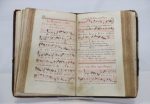encre rouge et noire sur papier, musique notée, reliure de l'époque veau havane moucheté et glacé, triple filet doré et fleurons angulaires aux plats, dos à nerfs, pièce de titre grenat.