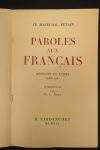PÉTAIN (maréchal Philippe). Paroles aux Français. Messages et écrits, 1931-1941. Lyon, H. Lardanchet, 1941 ; in-12, broché, non coupé. Ensemble de 81 exemplaires. Édition originale. Exemplaires sur papier vélin spécial de Condat. Quelques...