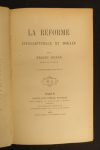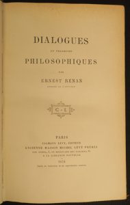 RENAN (Ernest). La Réforme intellectuelle et morale.— Dialogues et fragments philosophiques.— Vie de Jésus. Paris, Michel Lévy frères, 1872-1876 ; 3 vol. in-8, bradel demi-chagrin bleu nuit, titres dorés au dos. Édition originale pour les...