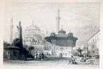 historique sur Constantinople et de la description des monumens… Première [- troisième] série. Paris & Londres, Fischer, [vers 1840] ; 3 parties en un fort volume in-4, demi-chagrin rouge, dos lisse, titre et filets dorés, [rel. de l'époque].