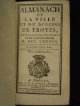 • Almanach de la ville et du diocèse de Troyes, capitale de la Champagne, pour l’an de grâce 1786 ; pet. in-16, veau marbré, encadrement de filets dorés sur les plats avec fleurons dorés aux angles, dos lisse orné de motifs dorés, pièce de titre rouge, tranches dorées, [Rel. de l’époque], légers frottements, petit manque au caisson de pied
