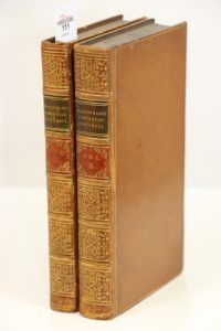 ARISTOPHANE. Aristophanis Comoediae. Accedunt perditarum fabularum fragmenta, ex recognitione e cum annotationibus Guilielmi Dindorfii. Vol. I-II. Londini, Apud Black, Young et Young, 1830 ; 2 vol. in-16 (19x11 cm), veau blond, encadrement doré aux...