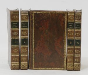 AUBOIN (S.). Mammalogie, ou Traité des mammifères. Paris, Masson et Yonet, 1831 ; 5 vol. in-16, basane racinée, encadrement de petits motifs dorés sur les plats, dos lisse orné de motifs dorés, pièces de titre et de tomaison vertes, tranches...