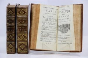 1 f.bl., 358 p., 1 f. de table.- 1 f. bl., 1 f. bl., 358 p., 1f. de table.- 1 f. bl., paginé 363-698, [22] p. table alphabétique pour les Nouvelles des six derniers mois de 1700.
