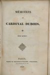 DUBOIS (cardinal Guillaume). Mémoires du cardinal Dubois. Mémoires secrets et inédits sur les cours de France aux XVe, XVIe, XVIIe, et XVIIIe siècles. Paris, Mame et Delaunay-Vallée, 1829 ; 4 vol. in-8, papier maroquiné à gain long vert...