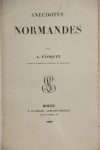 FLOQUET (Amable). Anecdotes normandes. Rouen, Le Grand, 1838 ; in-8, demi-chagrin noir, dos lisse orné à froid, titre doré, [rel. de l'époque]. [1] f. (titre), p. [V]-XIII, 237 p., [1] f. Rare, tiré à 150 exemplaires. L'auteur a recueilli...