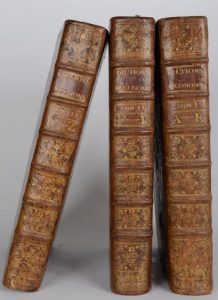 Chomel (Noël). Dictionnaire Oeconomique. Nouvelle édition entièrement corrigée et très considérablement augmentée par M. de La Marre. Paris, Ganeau, 1767. 3 volumes in folio, veau brun, dos à nerfs orné (Reliure de