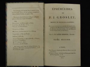Les Éphémérides troyennes de Grosley furent publiées de 1757 à 1768 et lui valurent de nombreux ennemis. Cette nouvelle édition, encouragée par la municipalité de Troyes, fut donné par l'éditeur Patris-Debreuil qui en a changé l’ordre, supprimé la phrase contre M. Gentil qui avait donné lieu à l’accusation, et ajouté quelques inédits et d’importantes notes.