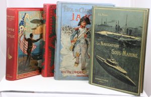 • PESCE (G. L.). La Navigation sous-marine. Préface de M. Laubeuf. Paris, Vuibert & Noury, s. d. ; gr. in-8, cartonnage d'édition en percaline verte, illustré d'une plaque décorative personnalisée réalisée d'après la maquette de Souze, tranches dorées.