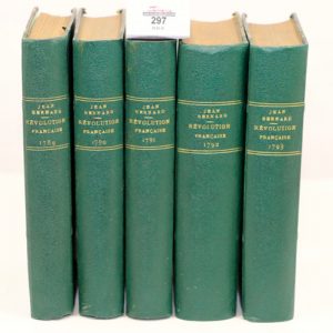 JEAN-BERNARD. Les Lundis révolutionnaires. Histoire anecdotique de la Révolution française. Avec une préface de Jules Clarétie. 1789-1793. Paris, Georges Maurice, 1889 ; 5 vol. in-12, reliure de l'époque, demi-percaline chagriné vert foncé,...
